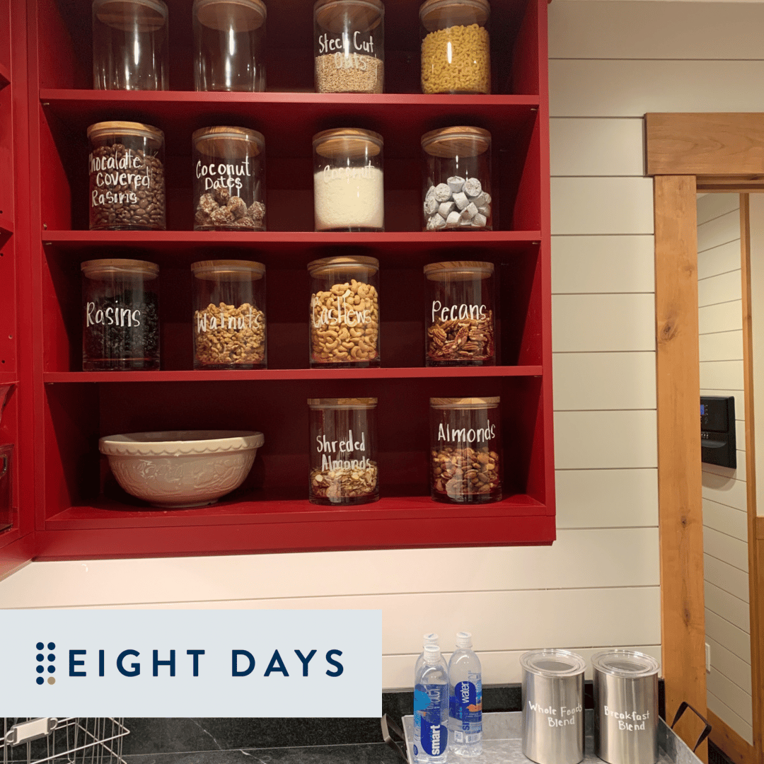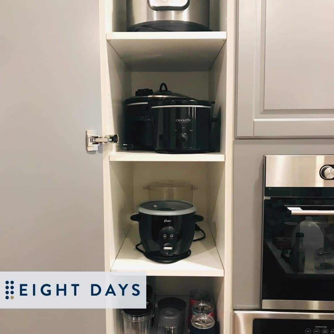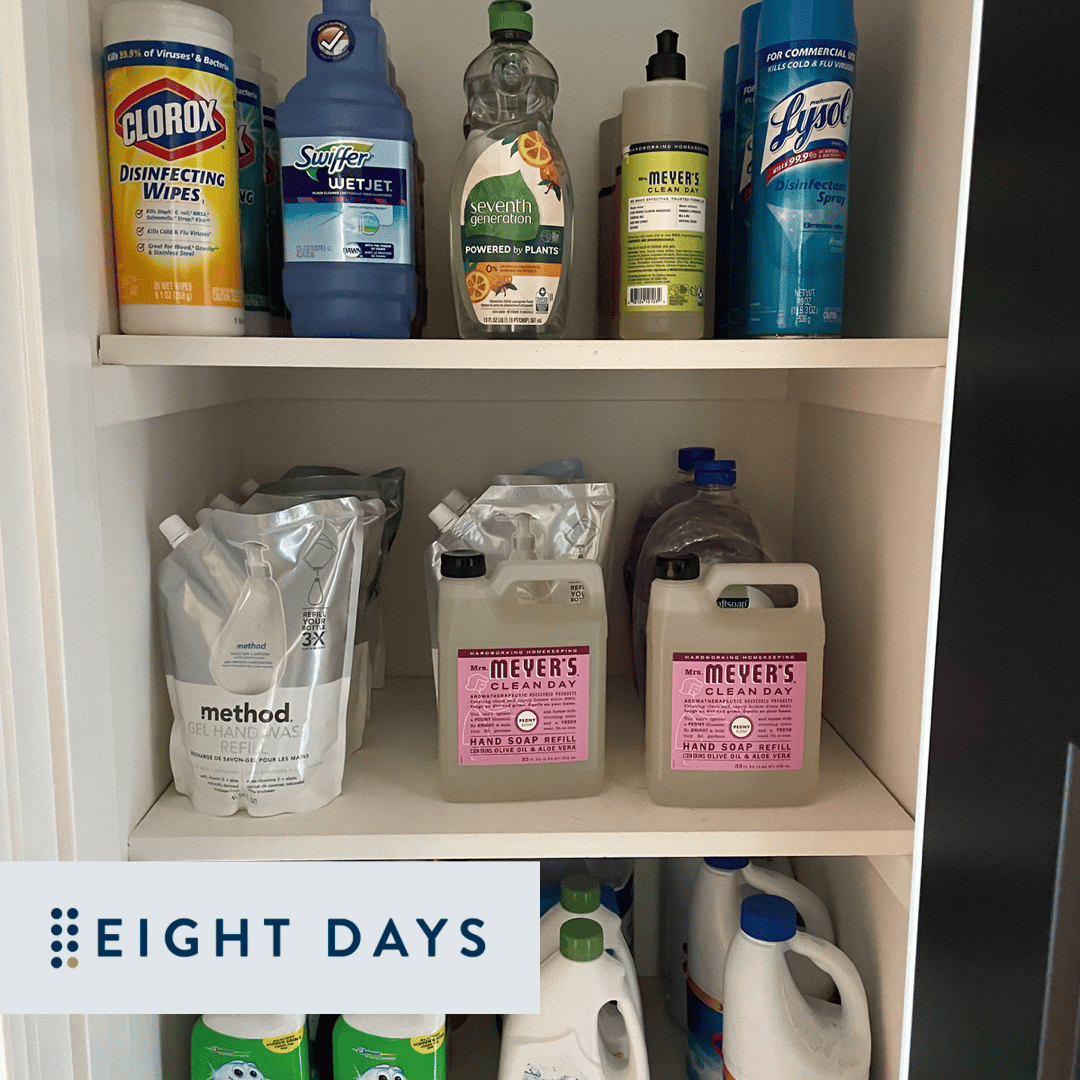 Every drawer and cabinet should not be packed full. We love clear space at Eight Days! Clear space can be accomplished by encouraging clients to do the following: